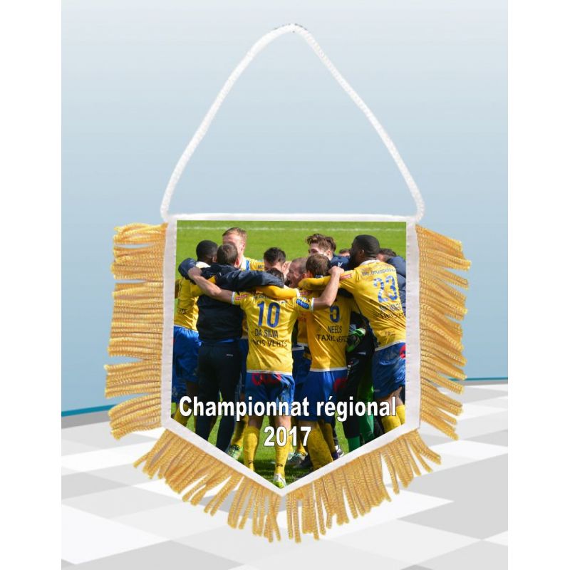 Ce fanion, en tissu blanc satiné, dispose de franges jaunes tout autour. Fourni avec sa cordelette d'attache, ce fanion accompagnera tous vos événements sportifs et associatifs. Disponible en 8.5X9.5 cm, le fanion est personnalisable aux couleurs de votre équipe.