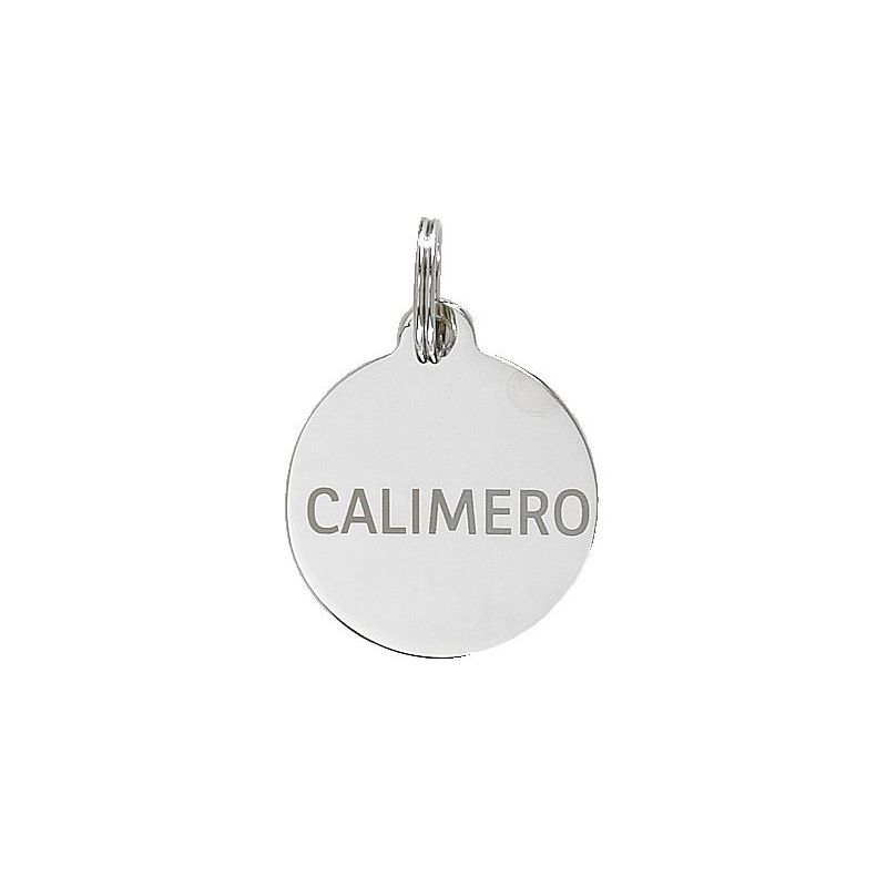 Médaille en laiton argenté ou doré. Livrée avec anneaux en acier. Plaque d'identité pour animaux. Gravure 2 lignes maximum incluse. Police type Arial. Diamètre 20, 25 ou 30 mm.