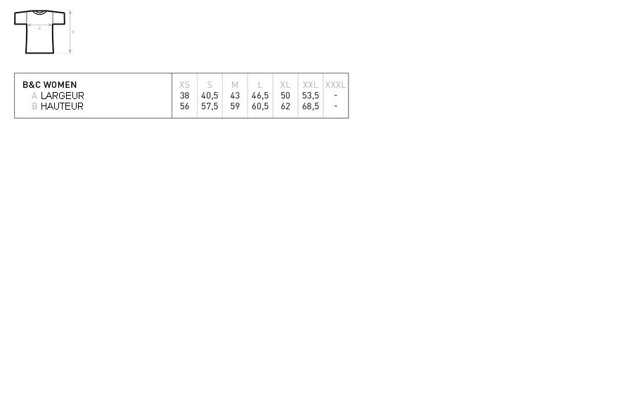 T-shirt femme basique. Col rond. Manches courtes. 100% coton. 41 coloris. XS au 3XL. Prix marquage compris visuel et texte, 1 face + 1 couleur ou quadri colour. Supplément marquage 2 ou 3 faces.